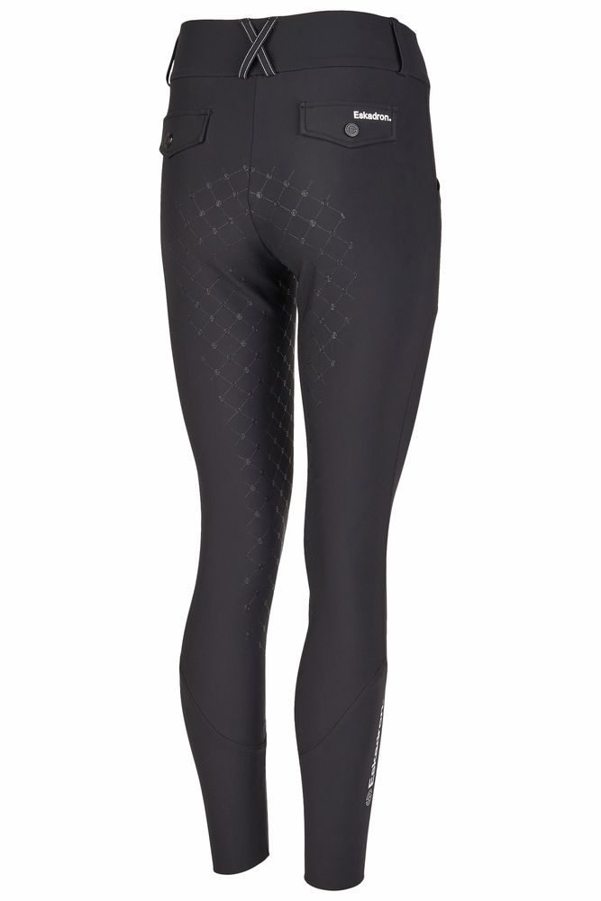 Für praktische Funktionalität sorgen die tiefen Einschubtaschen, die genug Platz für ein Handy oder kleine Essentials bieten. Der abriebfeste Eskadron Full-Grip gewährleistet sicheren Halt im Sattel.